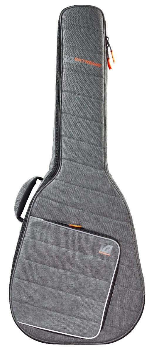 "The TGI Extreme series gigbags are made from a hard wearing grey woven cover with reflective piping and featuring 20 mm heavy padding / velour 'no-scratching' lining.